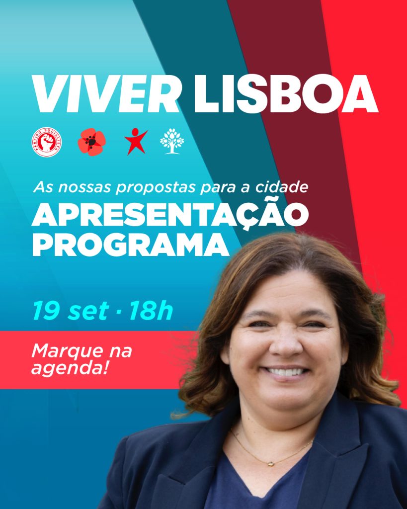 Dia 19, sexta-feira, apresentamos o programa da coligação #ViverLisboa.Um projeto progressista, humanista e ecologista, que parte das necessidades reais das pessoas e aponta soluções concretas para a cidade. Junte-se a nós pelas 18h.